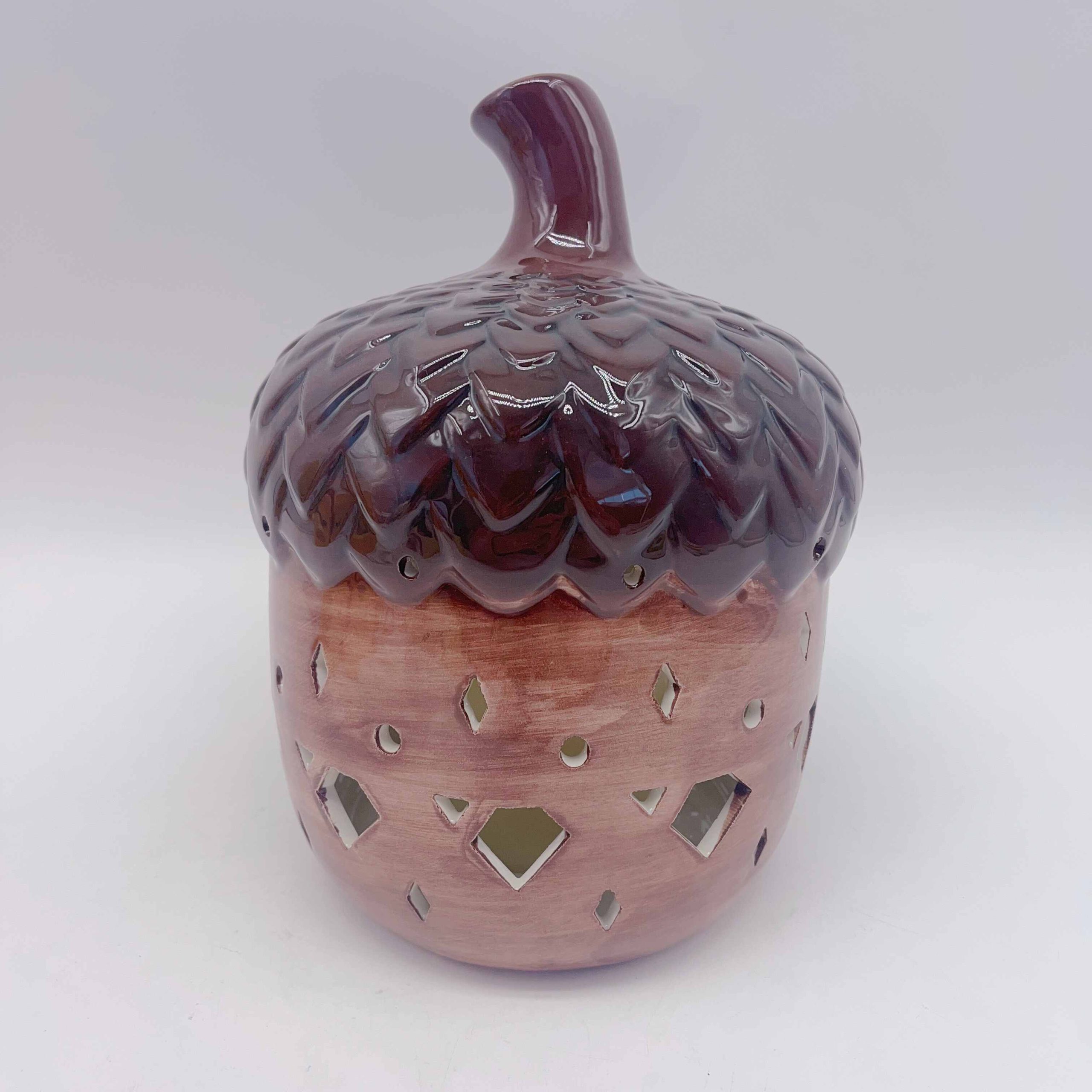 Illuminate your space with the enchanting Brown Acorn Ceramic LED Lamp. This exquisite lamp features intricate cutouts that cast a mesmerizing dance of light and shadow across your room. Its rich, earthy tones evoke warmth and coziness, while the delicate acorn design adds a touch of nature-inspired elegance to any setting.
