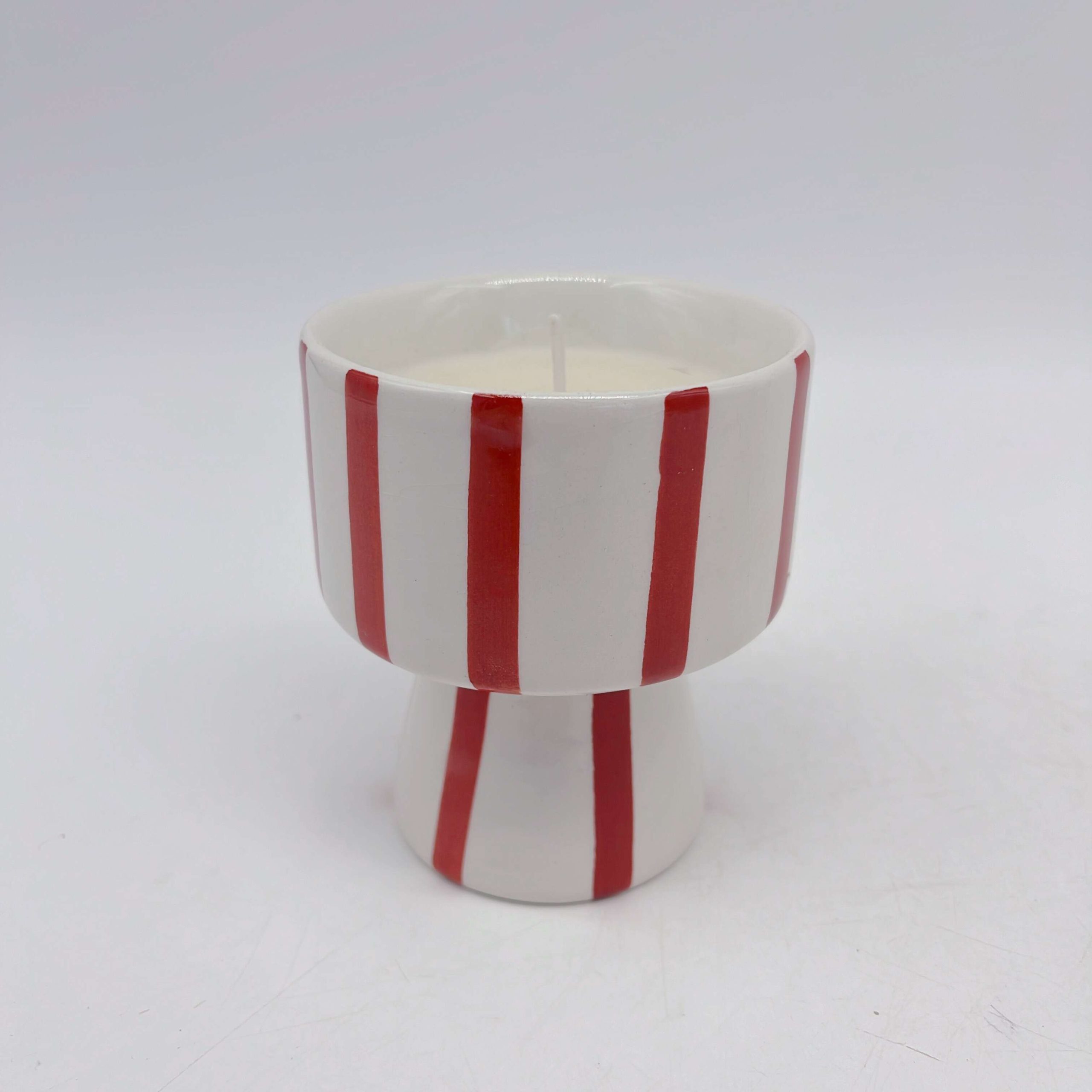 Illuminate your space with our Ceramic Candle Holder, featuring a striking red and white striped design. Its glossy finish reflects candlelight beautifully, creating a warm, inviting glow. Perfect for adding a touch of elegance and festive charm to any room.