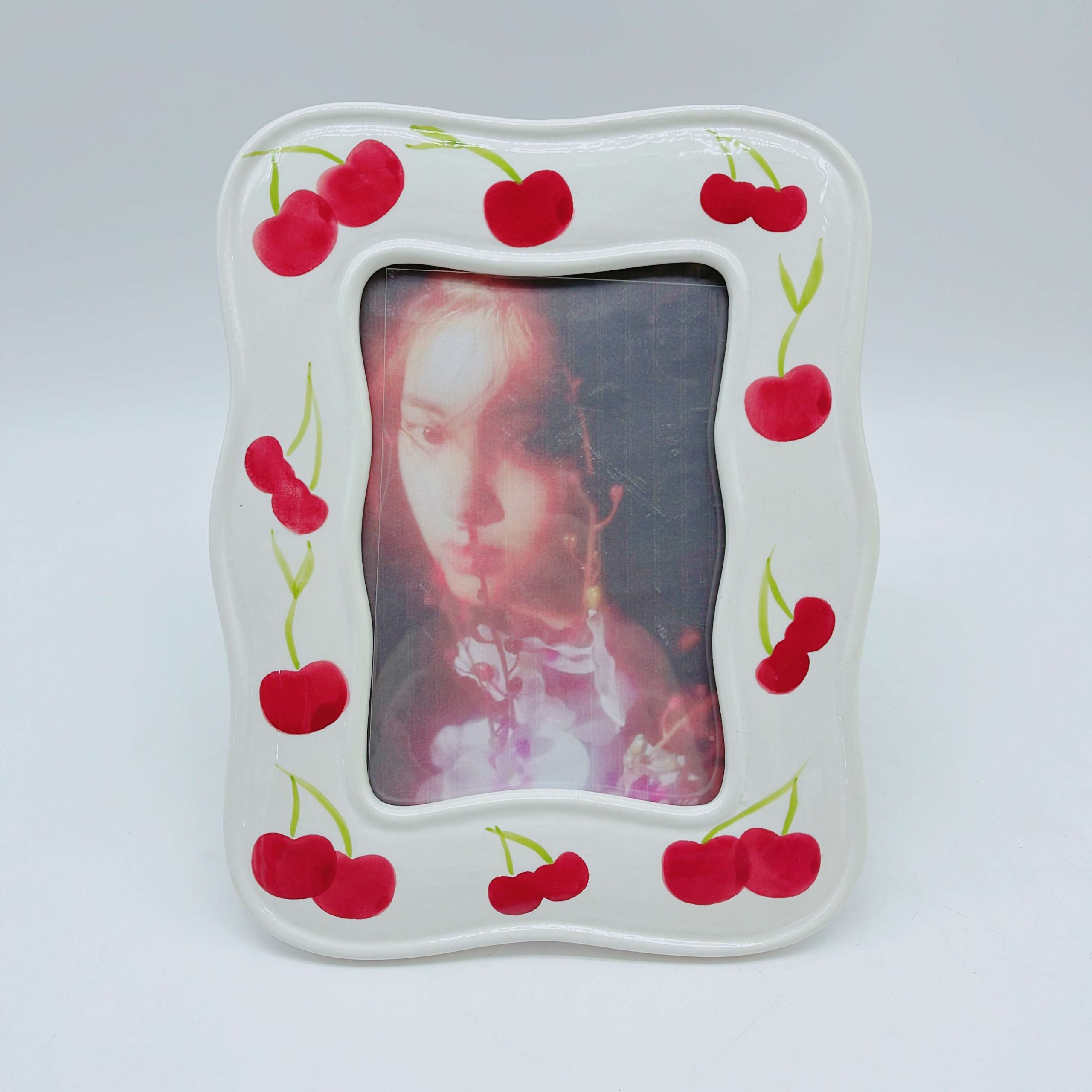 Elevate your space with the Ceramic Cherry Photo Frame. Its glossy, cherry-red finish exudes elegance, cradling cherished memories in a delicate embrace. Perfect for any decor, it adds a touch of sophistication and warmth to your home or office display.