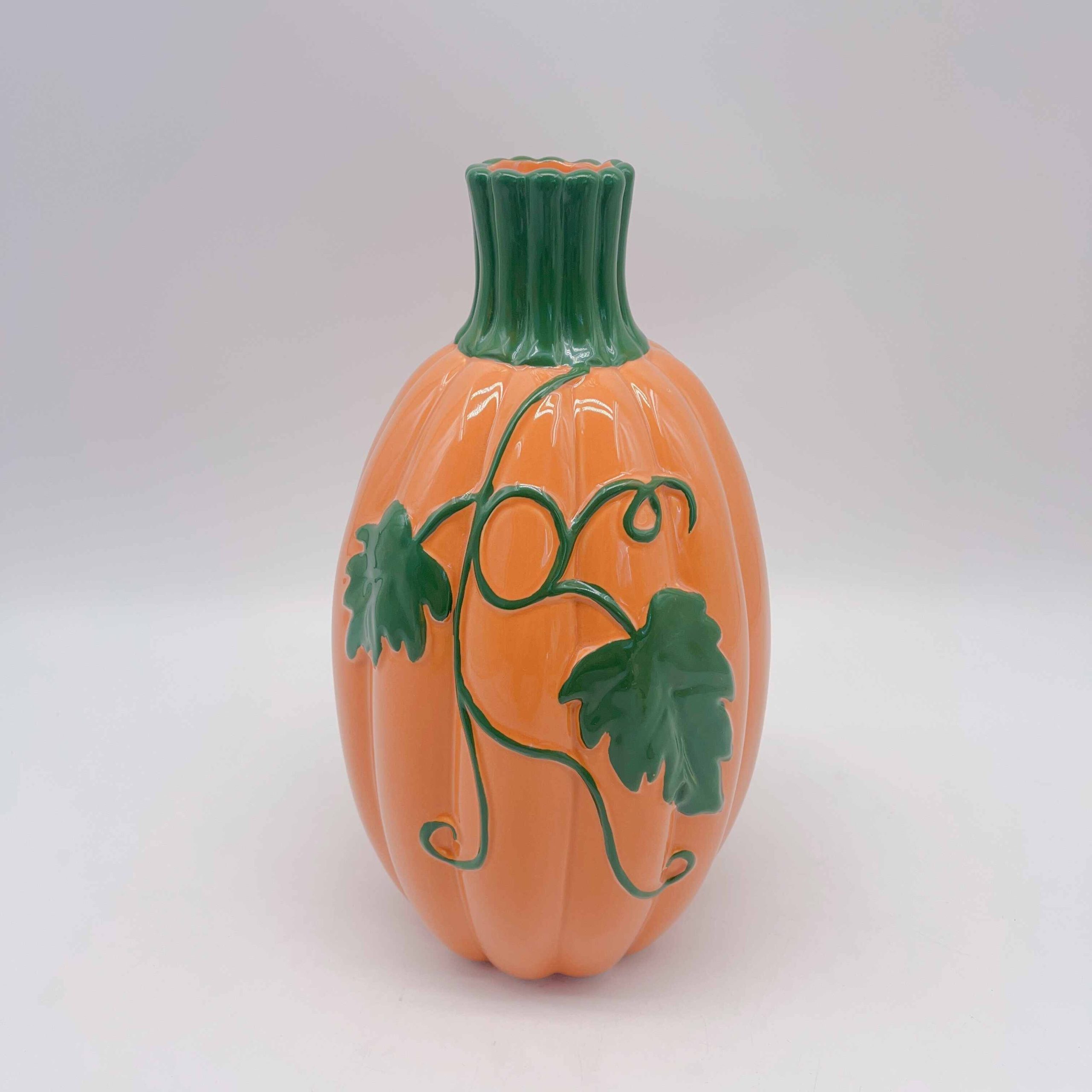 Transform your space with our Ceramic Pumpkin Vase, a vibrant blend of autumnal orange and lush green leaves. This Halloween decor piece exudes rustic charm, capturing the essence of fall. Perfect for showcasing seasonal blooms or as a standalone statement, it brings warmth and whimsy to any setting.