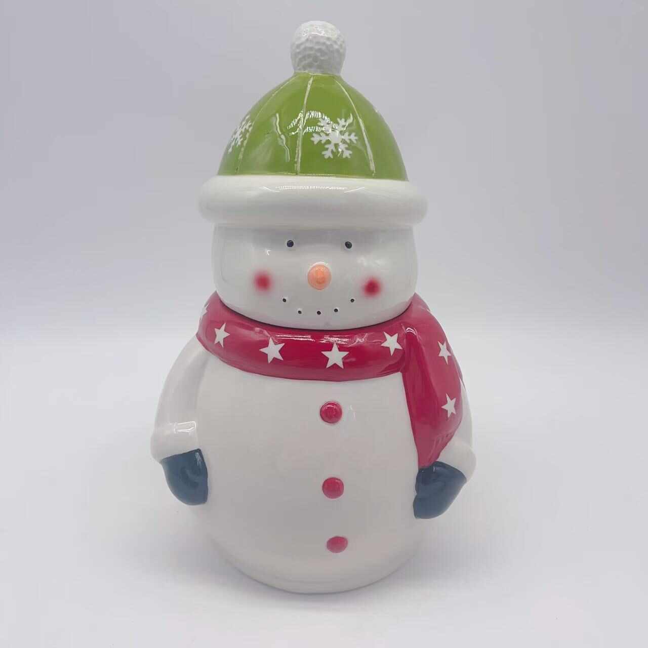 Embrace festive charm with our Ceramic Snowman Jar, adorned in a vibrant green scarf. This delightful piece captures the essence of Christmas, featuring intricate detailing and a glossy finish that gleams under twinkling lights. Perfect for storing treats or as a joyful centerpiece, it radiates warmth and holiday cheer.