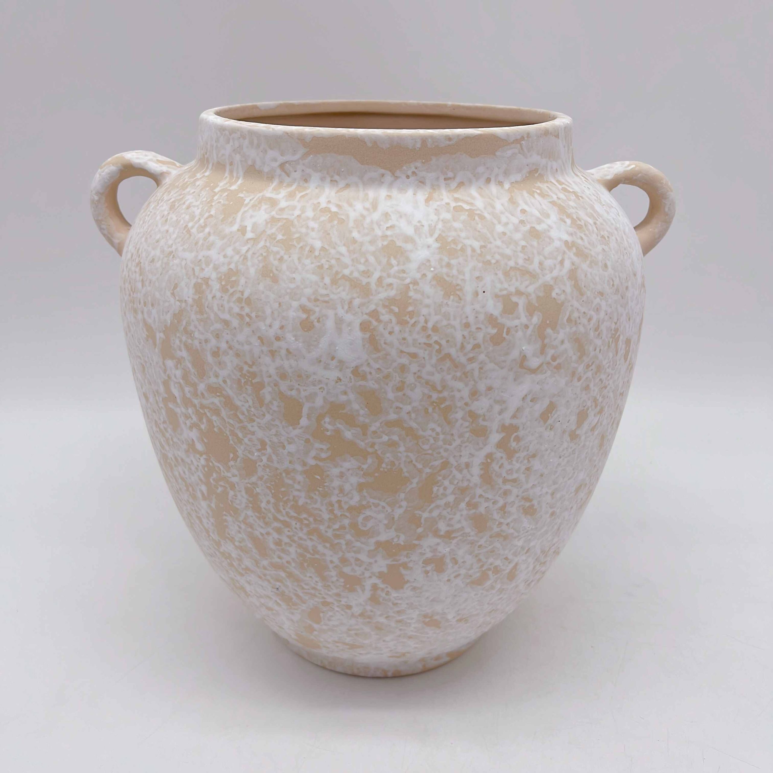Brighten your space with our Ceramic Vase in Yellow and White. Featuring a unique dual handle design, its smooth glaze radiates sunshine warmth. Perfect for fresh blooms or as a standalone piece, it adds an artistic touch to any room, inviting elegance and charm.