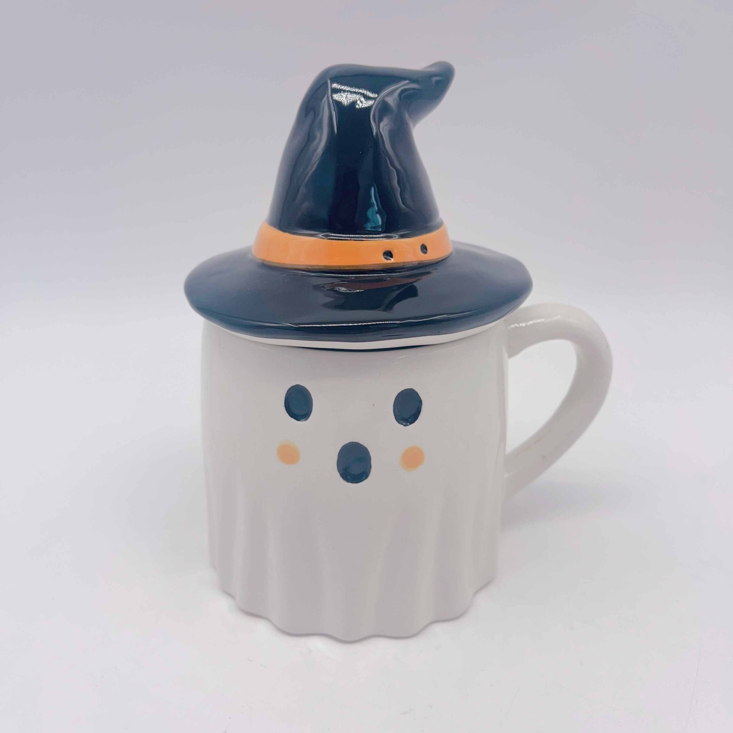 Ceramic White Ghost Black Hat Halloween Mug