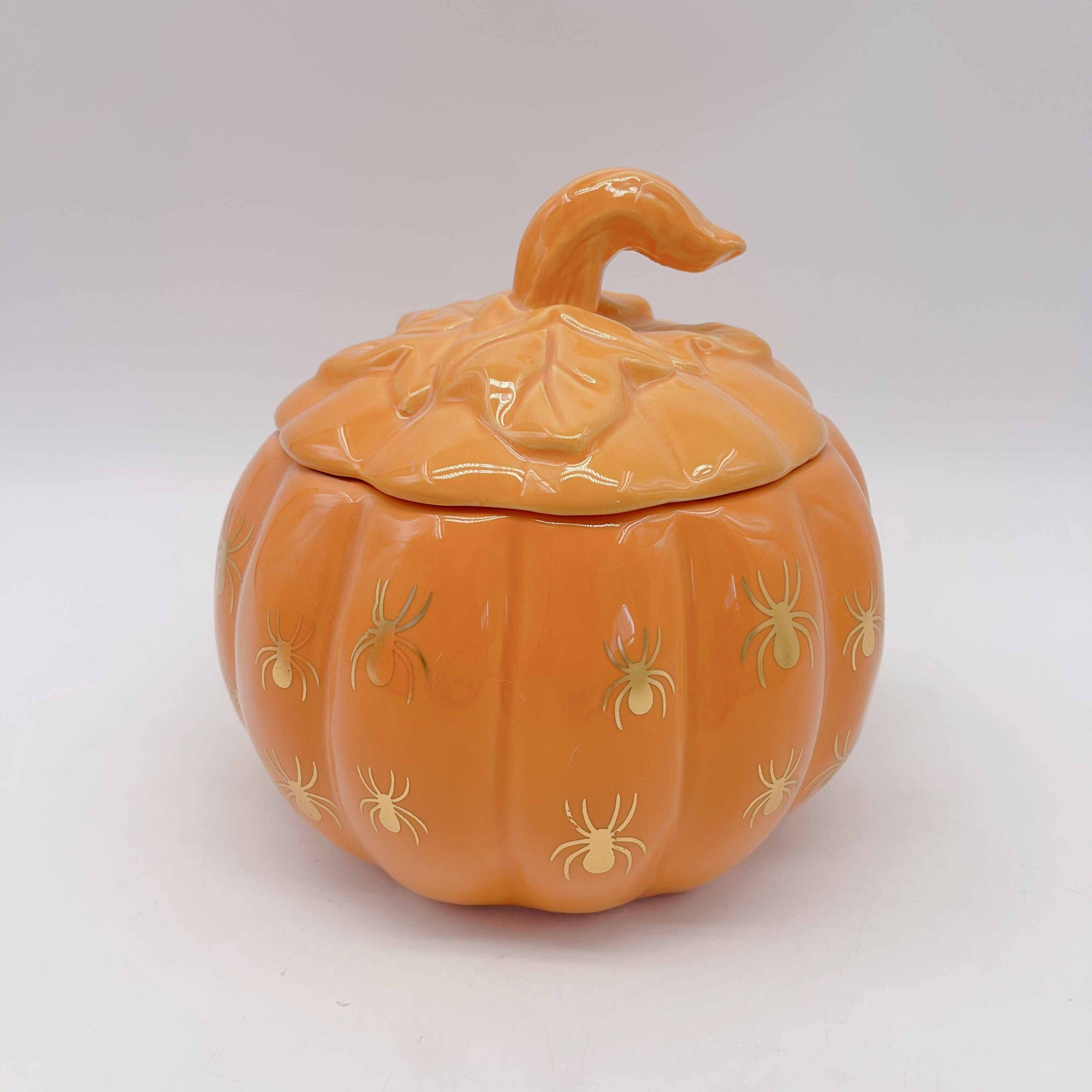 Unveil an aura of mystique with our Gold Spider Decal Ceramic Halloween Pumpkin Jar. This enchanting piece features a glossy ceramic finish adorned with intricate gold spider decals, casting a luxurious glow. Perfect for storing treats or as a haunting centerpiece, it evokes the eerie elegance of Halloween nights.