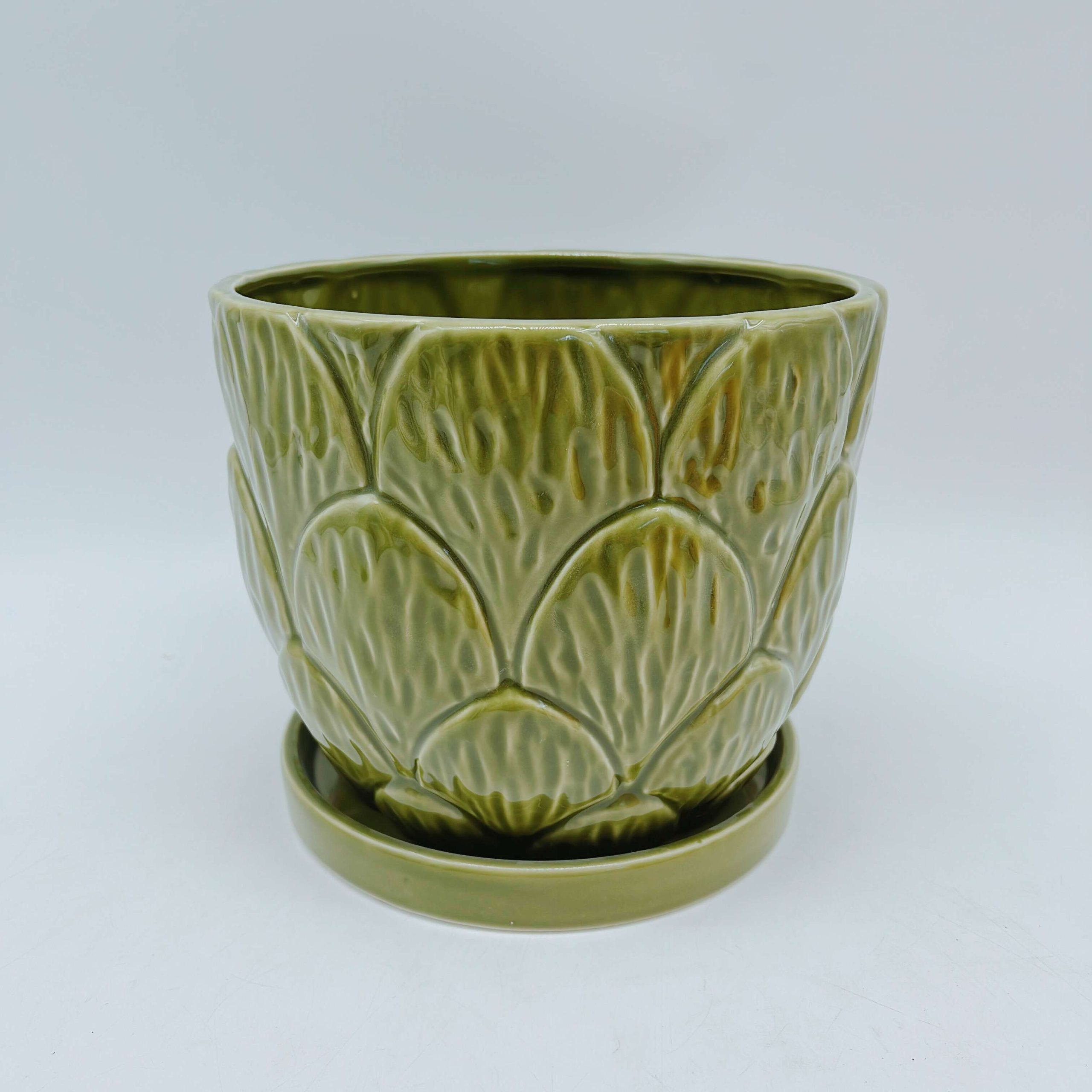 Green Ceramic Planter with Saucer