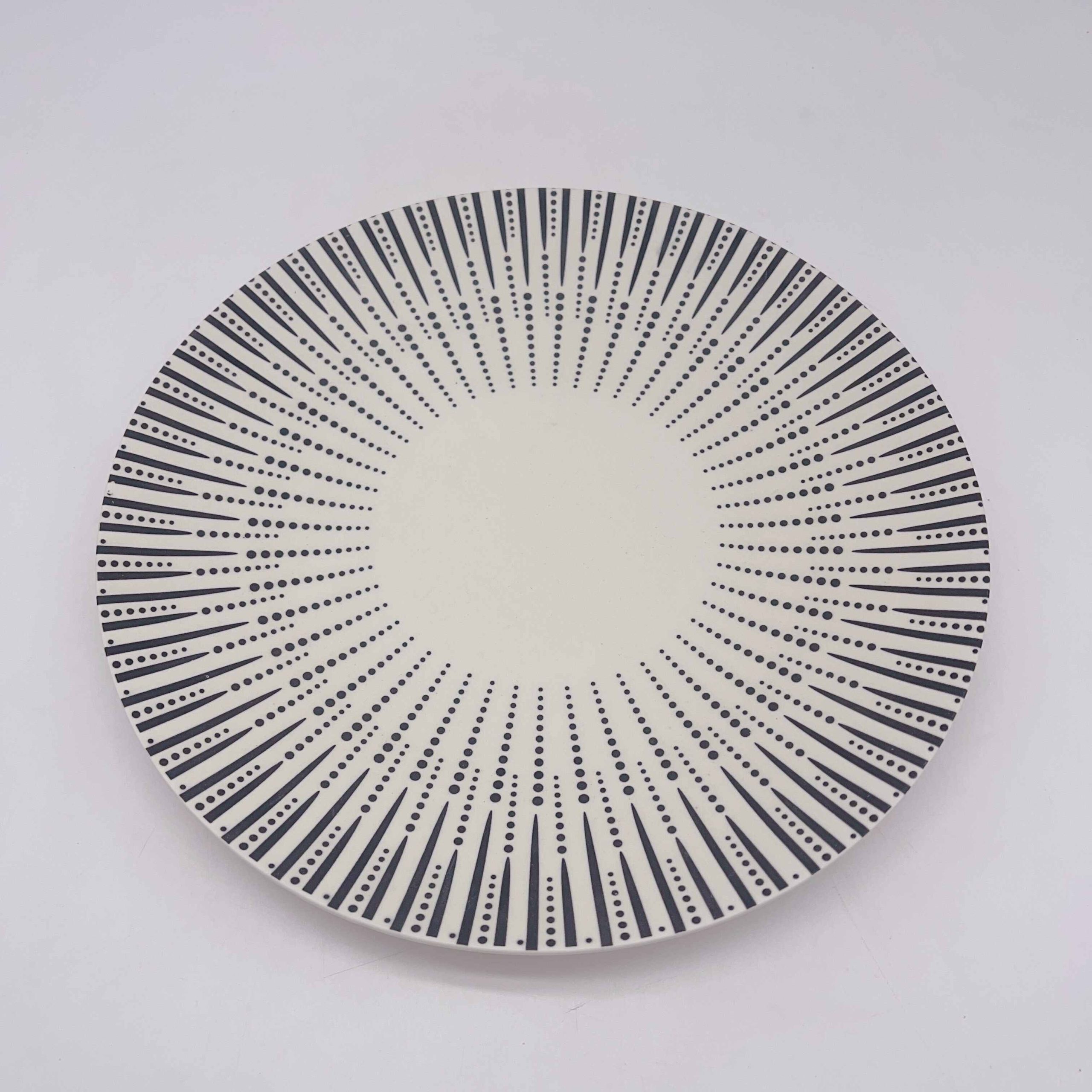 Large Black Ceramic Plate with Radiant Polka Dots