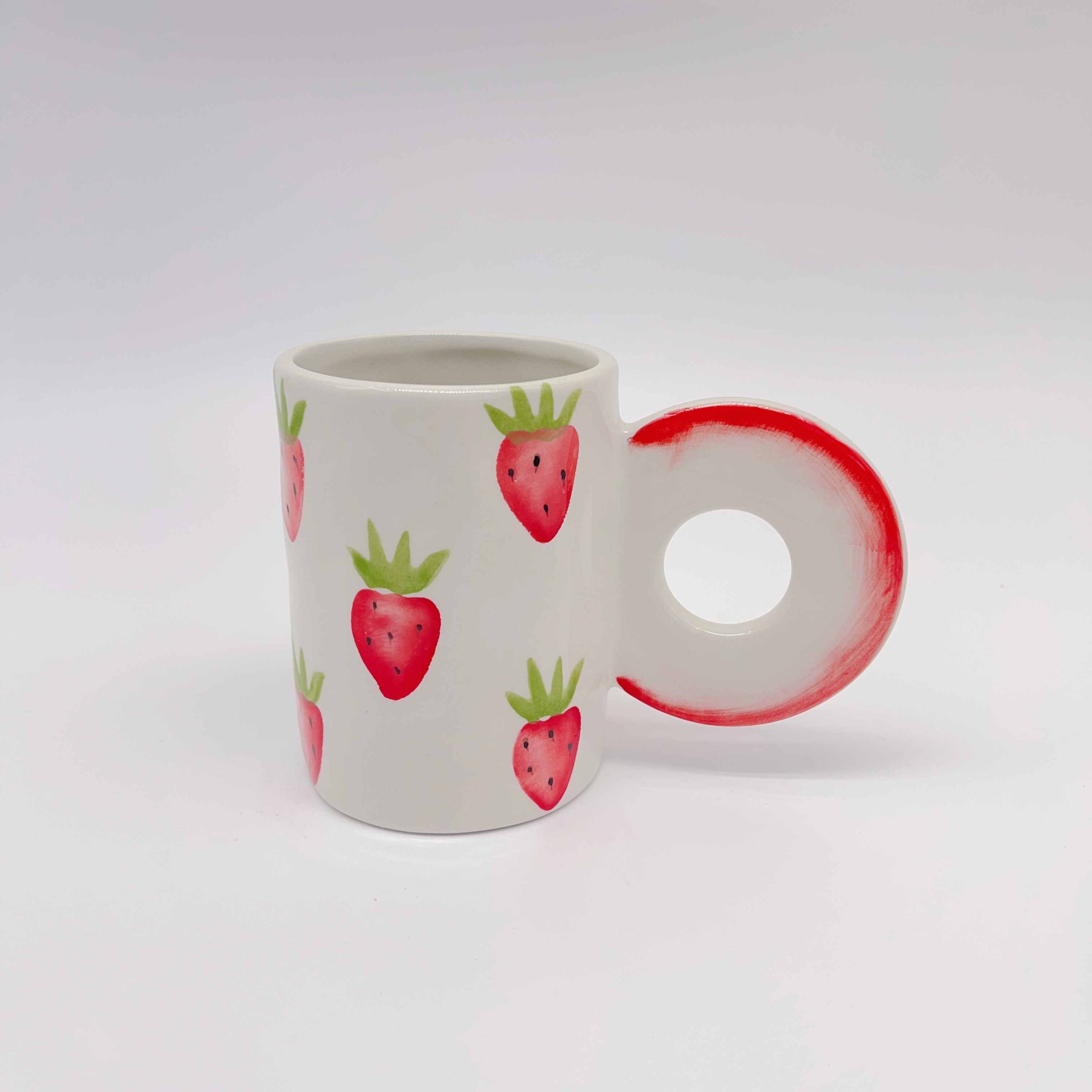 Indulge in whimsy with our Large Ceramic Strawberry Ear Cup. This charming piece bursts with vibrant red hues and delicate green accents, mimicking a luscious strawberry. Its smooth ceramic surface feels cool to the touch, while its generous size promises a delightful sipping experience. Perfect for adding a playful twist to your morning ritual!