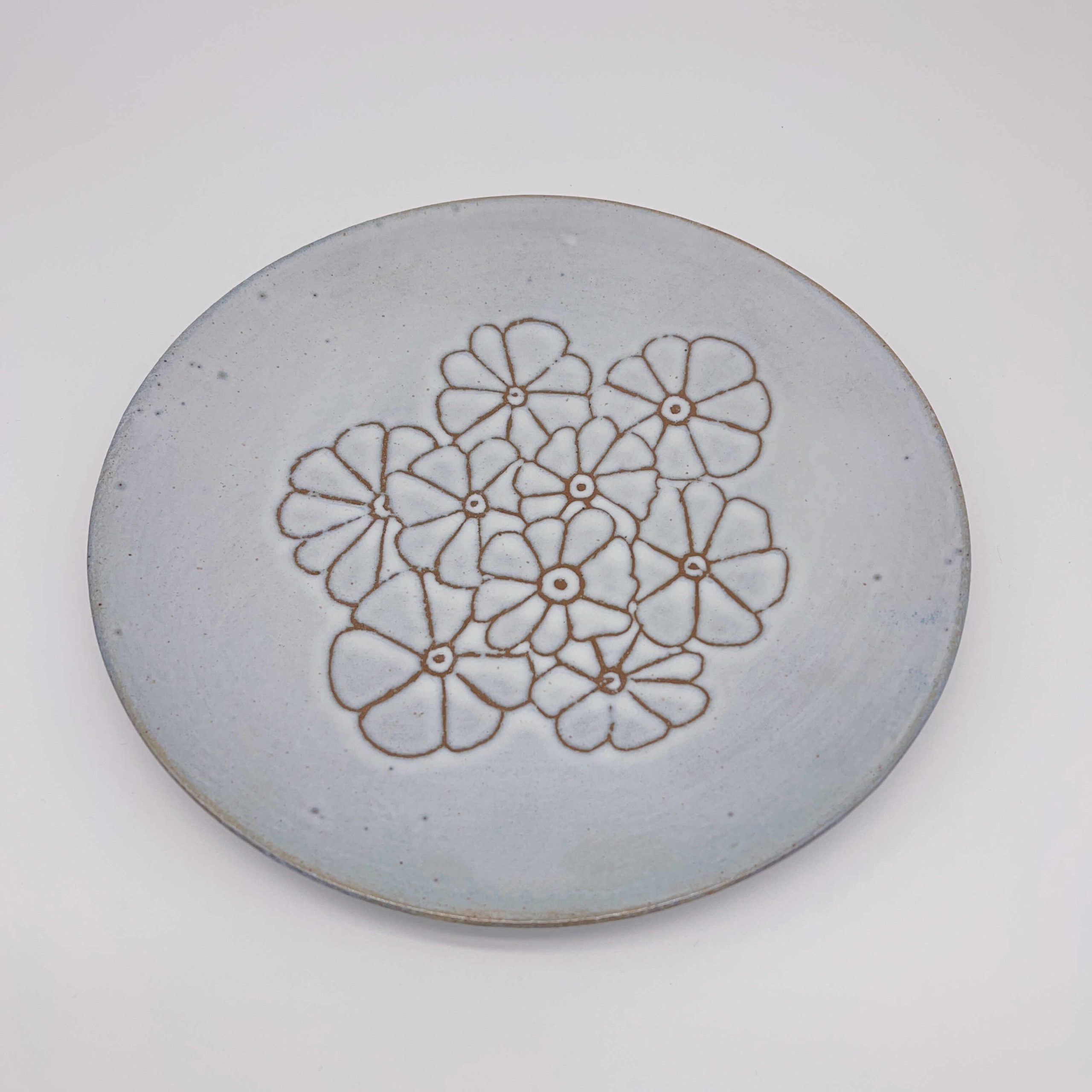 Elevate your dining experience with our Large Gray Ceramic Flower Plate. This exquisite round design showcases a delicate floral motif, etched into smooth ceramic. The subtle gray hue adds sophistication, while the tactile surface invites touch. Perfect for serving or display, it transforms any setting into an elegant affair.