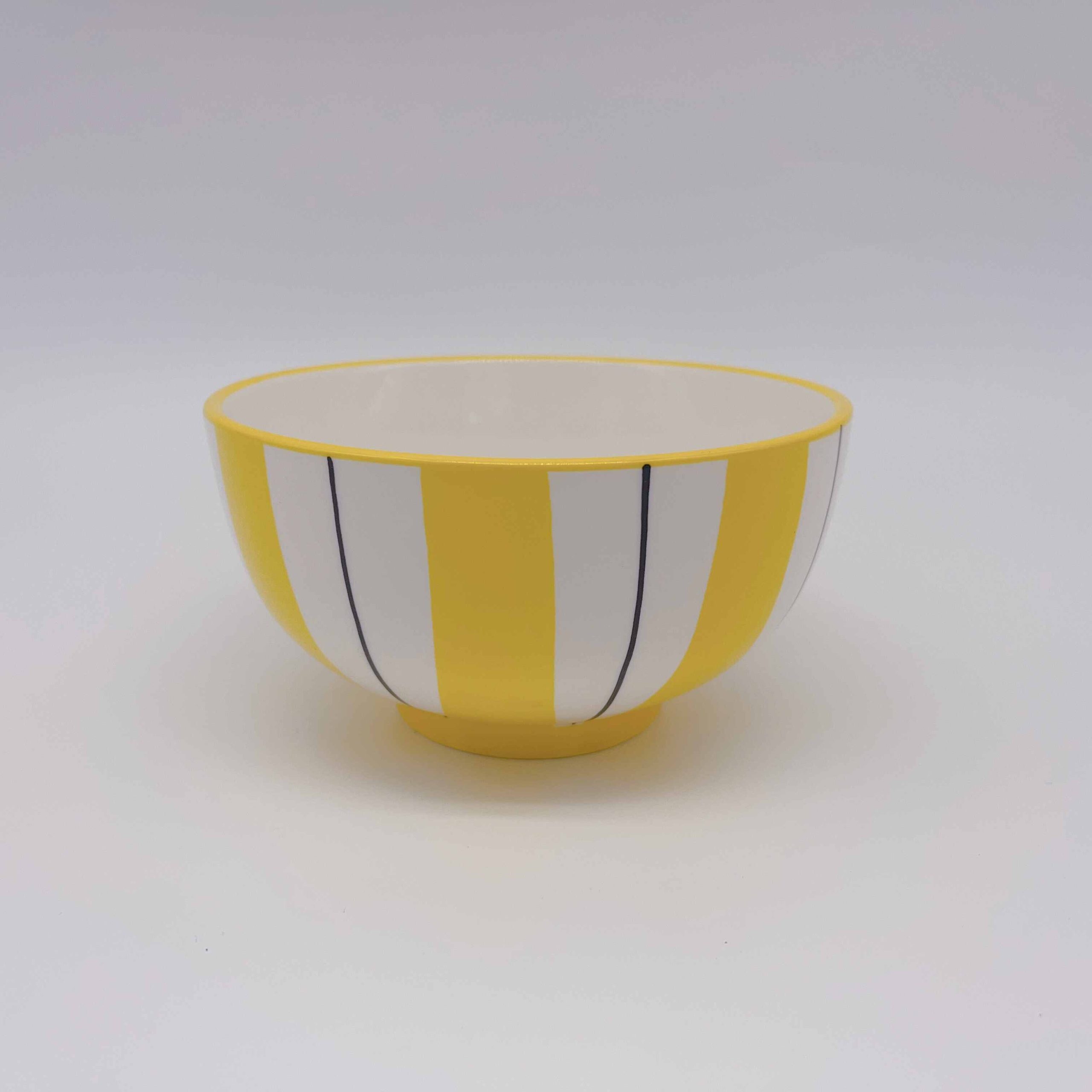 Medium Ceramic Bowl Yellow White Stripes Daily Use