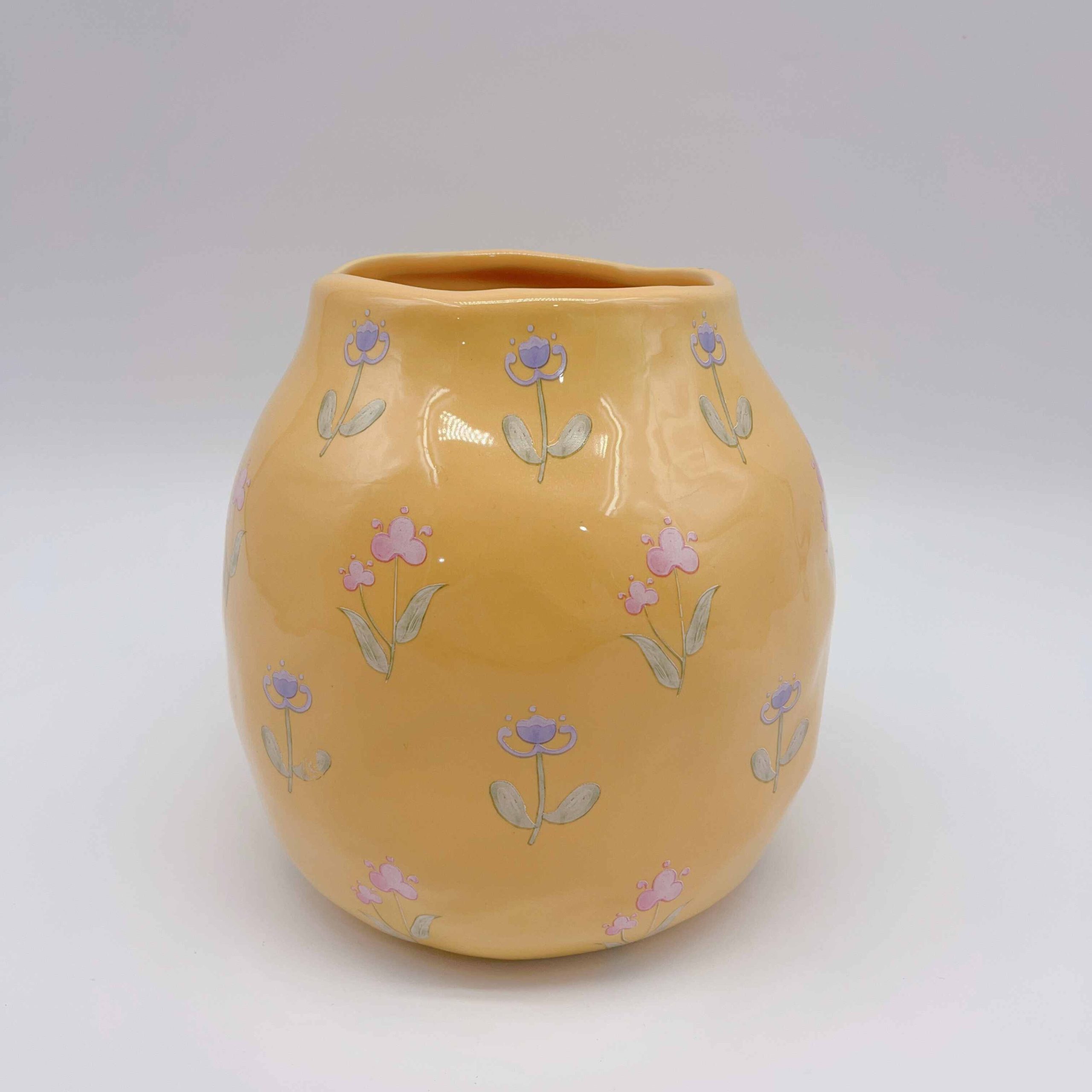Illuminate your space with the Medium Vintage Yellow Ceramic Applique Vase. Its sunlit hue and intricate floral patterns evoke a sense of timeless elegance. Perfectly sized for any nook, it invites you to imagine vibrant blooms dancing in its textured embrace.