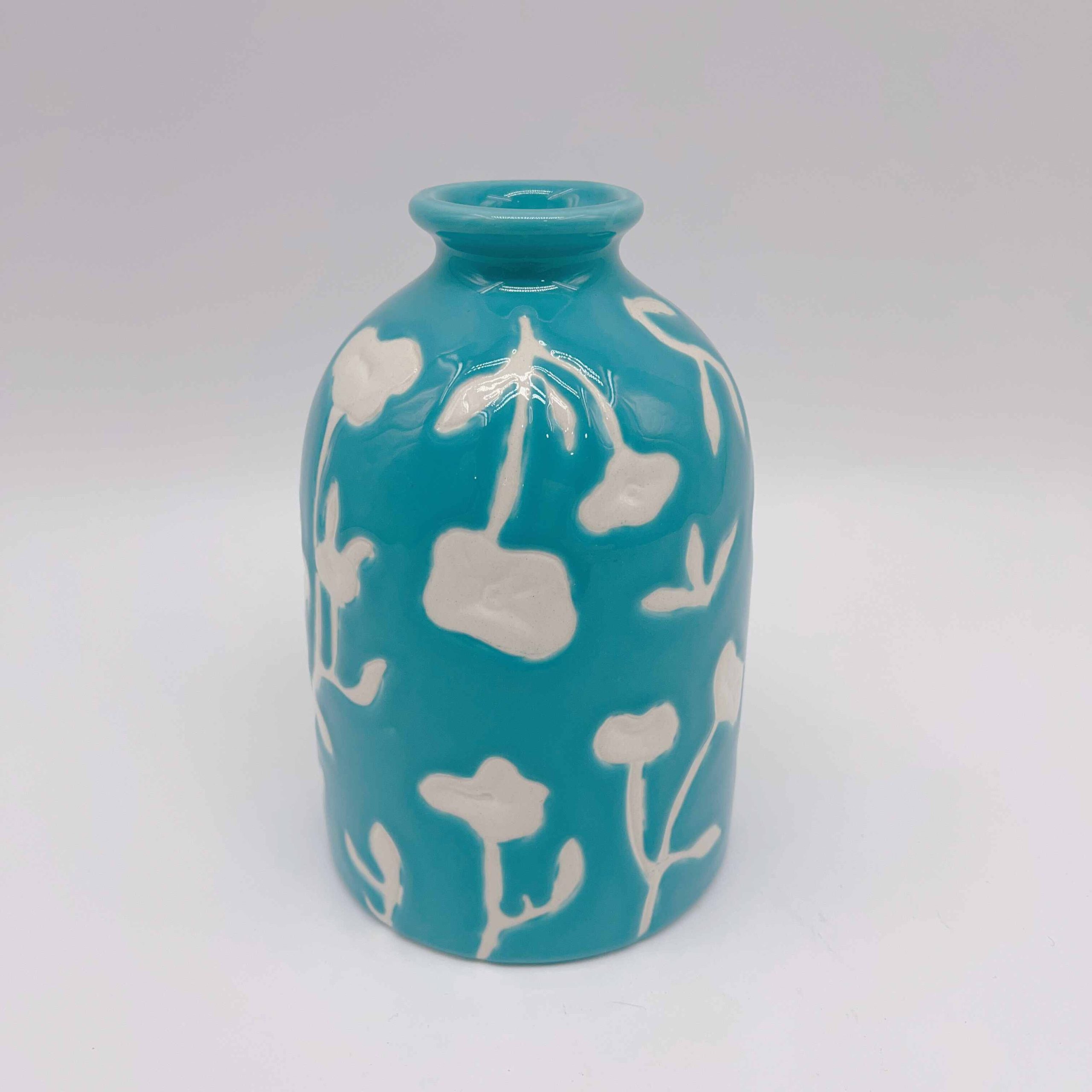Elevate your space with our Medium White Floral Ceramic Blue Vase. Its intricate floral patterns dance across a serene blue backdrop, evoking the tranquility of a blooming garden. Perfect for adding elegance and charm, it??s a visual feast for any decor lover.