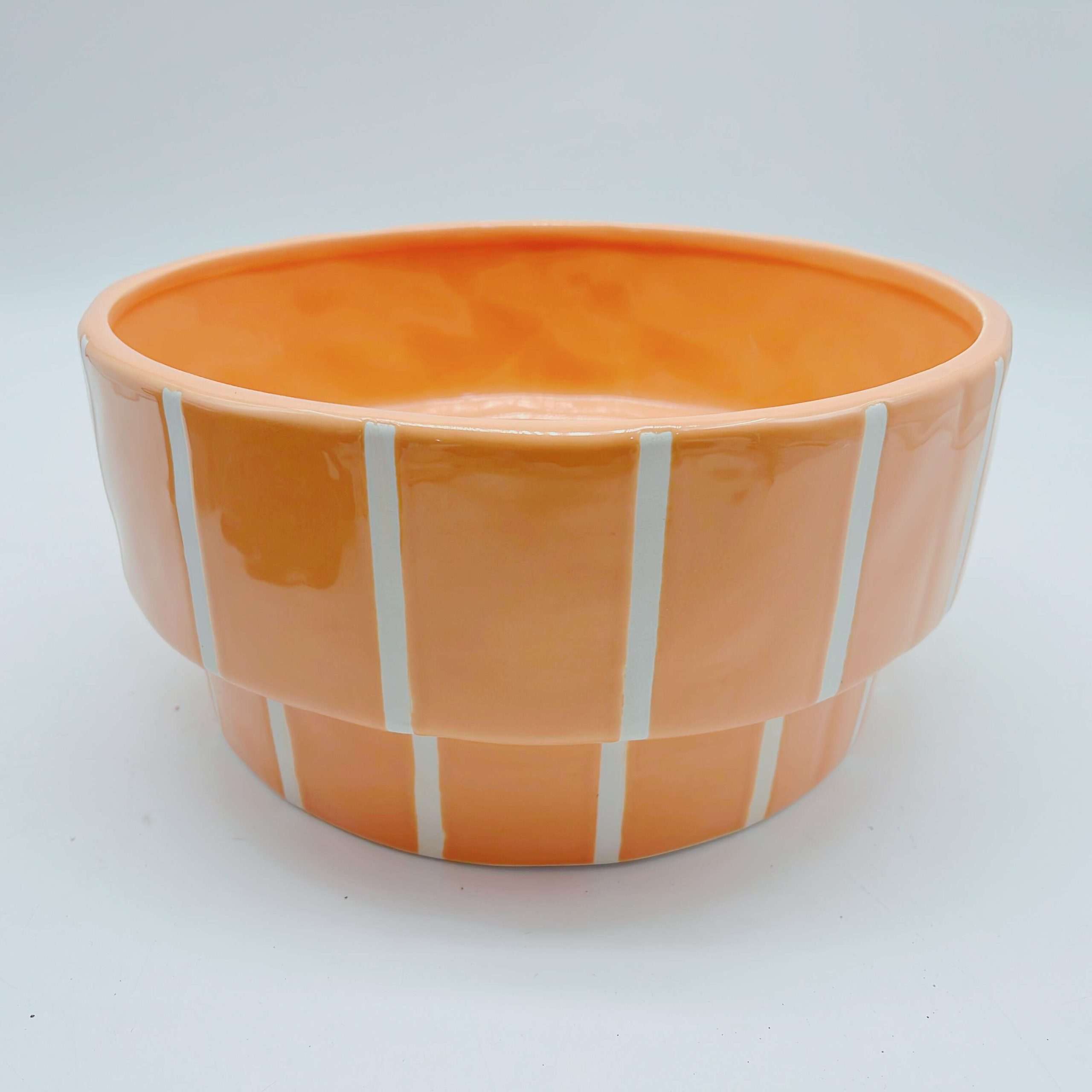 Orange Striped Ceramic Painted Flower Pot