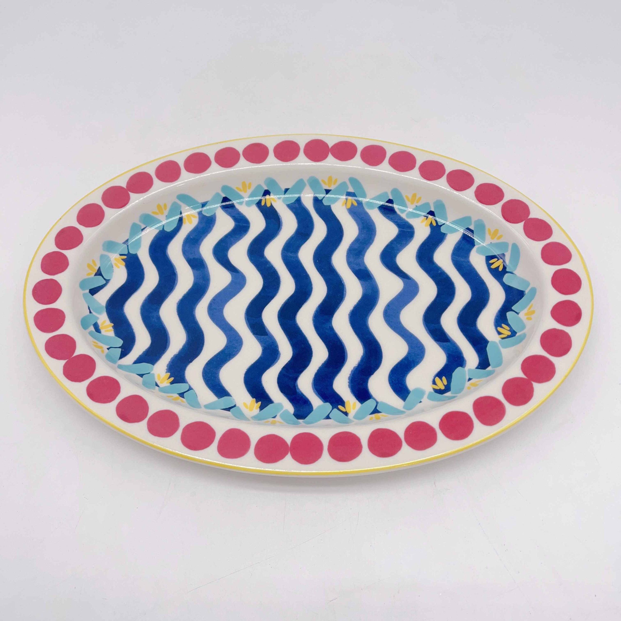 Dive into elegance with our Oval Ceramic Plate, featuring a mesmerizing Blue Water Ripple Design. This plate captures the serene beauty of flowing water, bringing tranquility to your dining experience. Its smooth, glossy finish and vibrant hues make every meal feel like an artistic masterpiece.