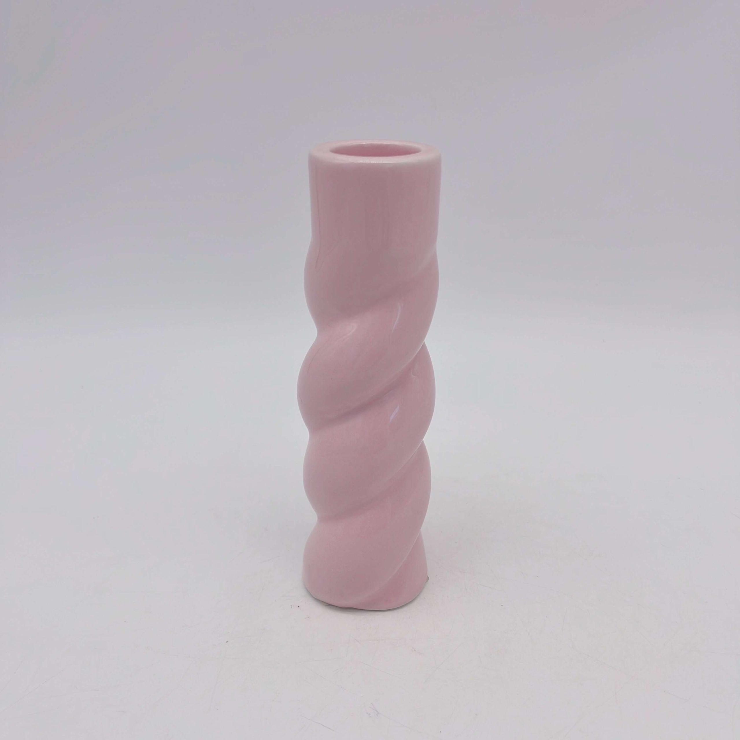 Illuminate your space with the Pink Spiral Ceramic Candle Holder. Its swirling design, reminiscent of a delicate seashell, captures light beautifully. The soft pink hue adds a touch of elegance, while its smooth ceramic finish invites you to feel its artistry.