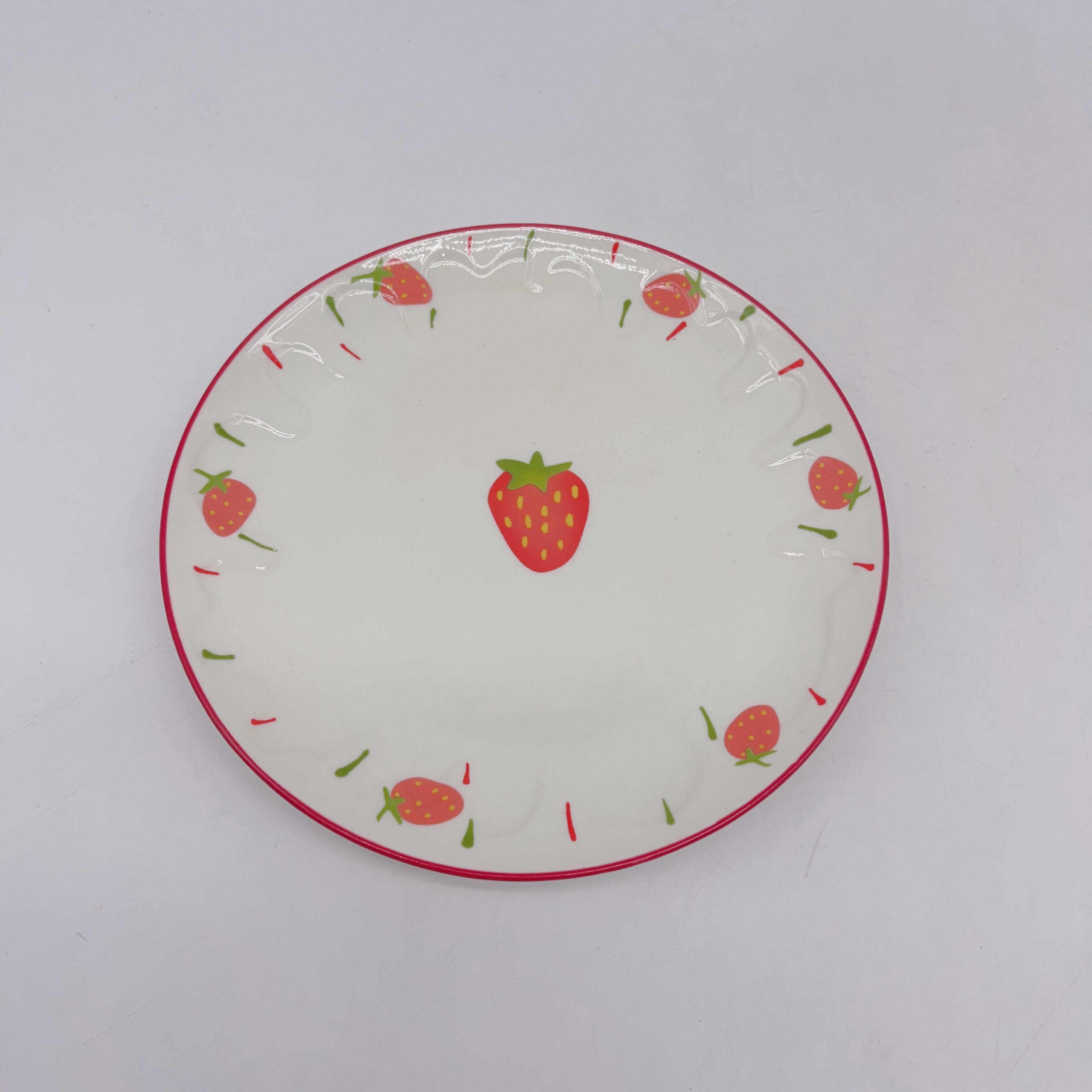 Indulge in the charm of our Pink Strawberry Ceramic Plate, where whimsy meets elegance. Crafted with a soft pink hue and adorned with delicate strawberry motifs, this plate promises to elevate your dining experience. Feel the smooth ceramic under your fingertips as you savor every meal on this delightful piece.