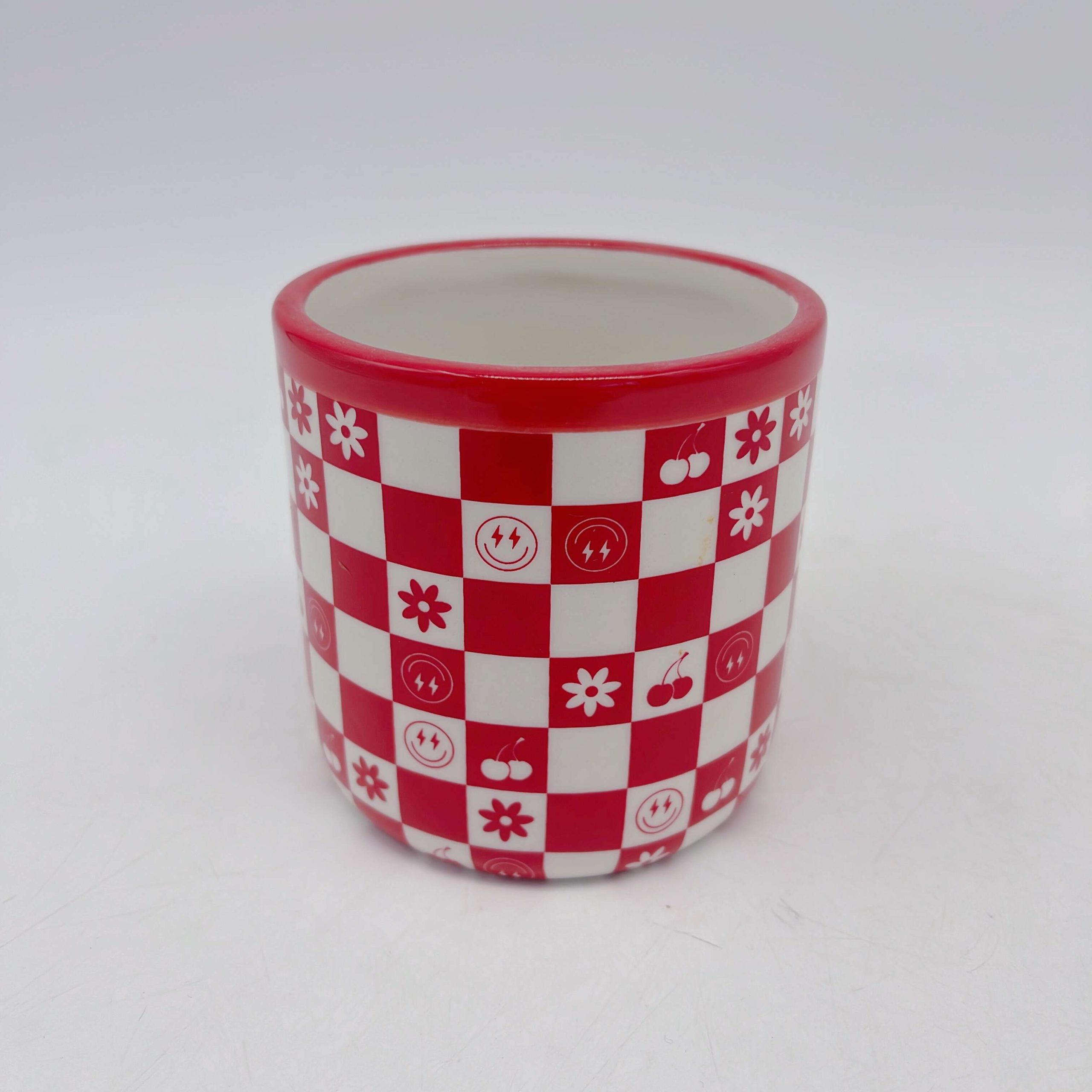 Illuminate your space with our Red Checkered Ceramic Candle Holder. Its vibrant red hues and intricate checkered pattern create a cozy, rustic charm. Feel the warmth as candlelight dances across its glossy surface, casting enchanting shadows in any room.