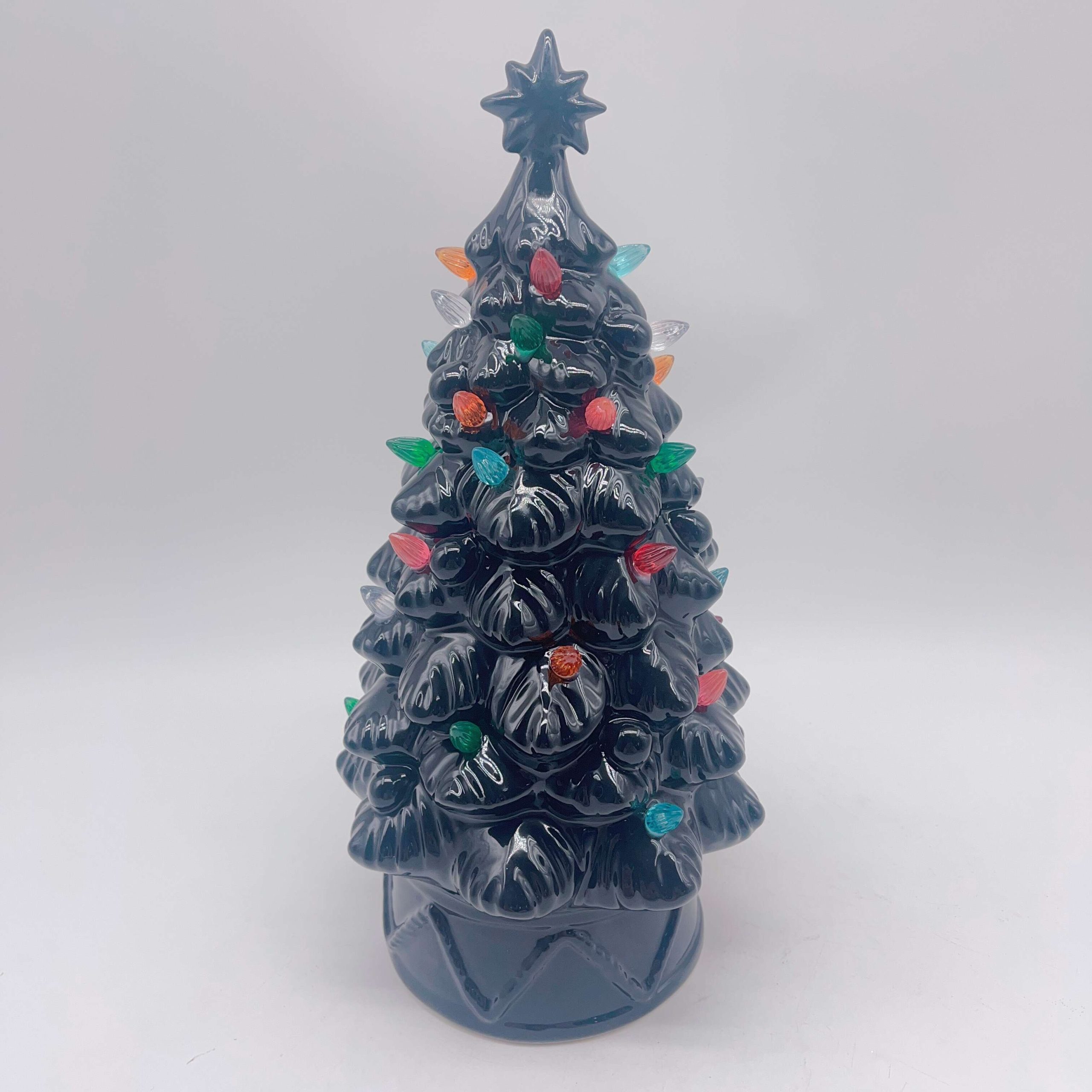Illuminate your holiday season with our Small Black Ceramic Christmas Ornament LED Light. This exquisite piece radiates a warm, cozy glow through intricate cutouts, casting enchanting patterns on nearby surfaces. Its sleek black ceramic finish adds a touch of modern elegance, making it the perfect festive centerpiece.