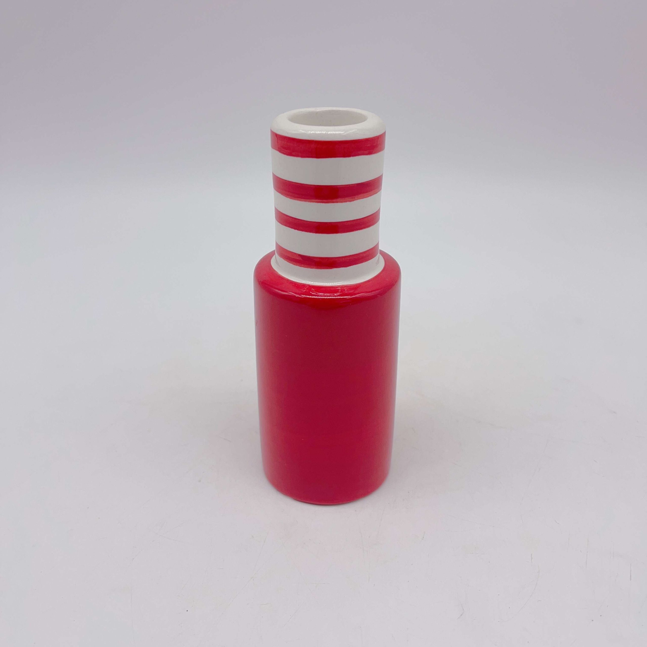 Illuminate your space with our Small Red Striped Ceramic Candle Holder. Its vibrant red stripes dance across a smooth ceramic surface, casting warm, flickering shadows that evoke cozy evenings. Perfectly sized for intimate settings, it adds a touch of elegance and charm.