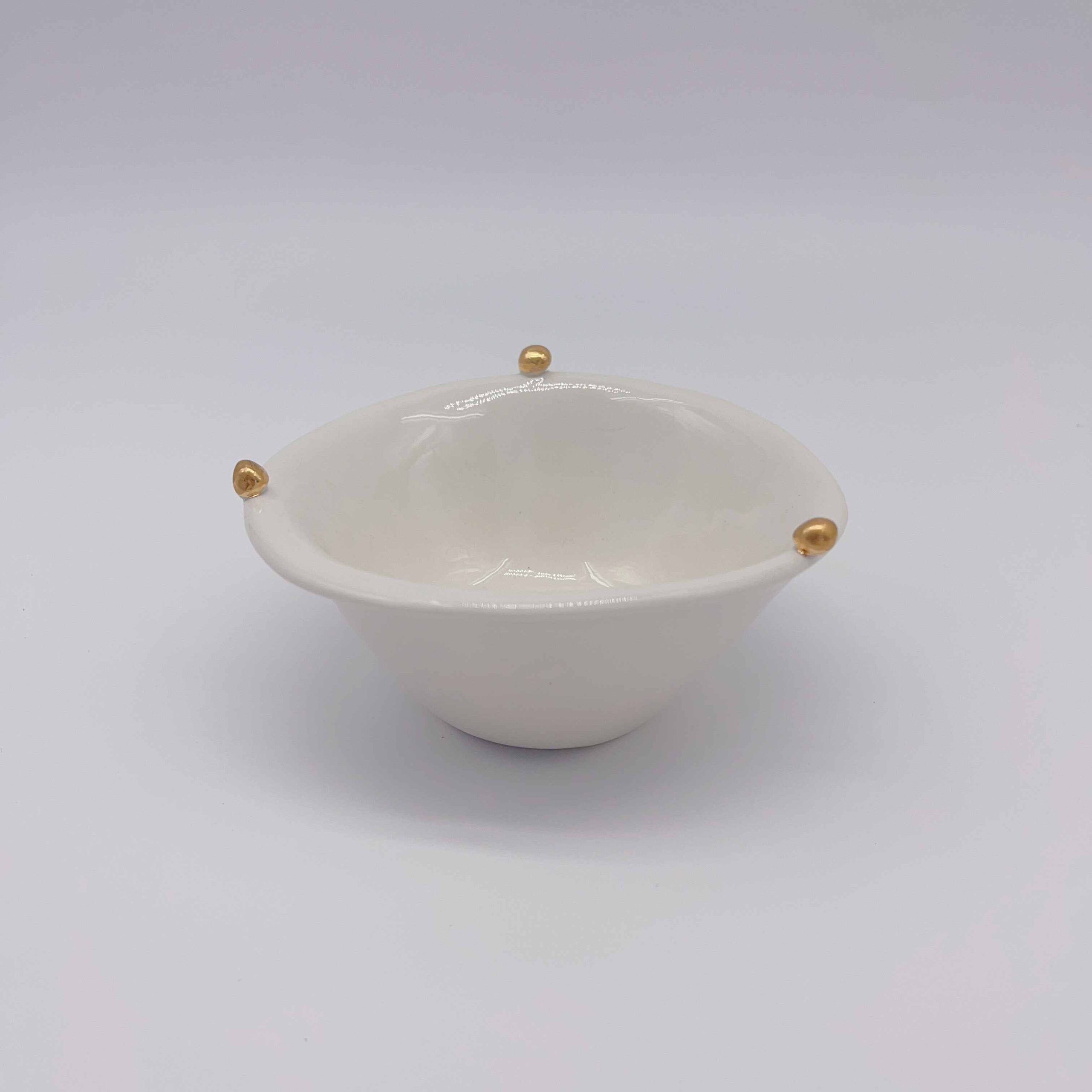Elevate your dining experience with our Small White Ceramic Bowl, adorned with an elegant gold trim. Its smooth, glossy surface invites touch, while the gleaming edge adds a touch of luxury. Perfectly sized for daily use, it transforms every meal into a visual delight. Feel sophistication in every bite.