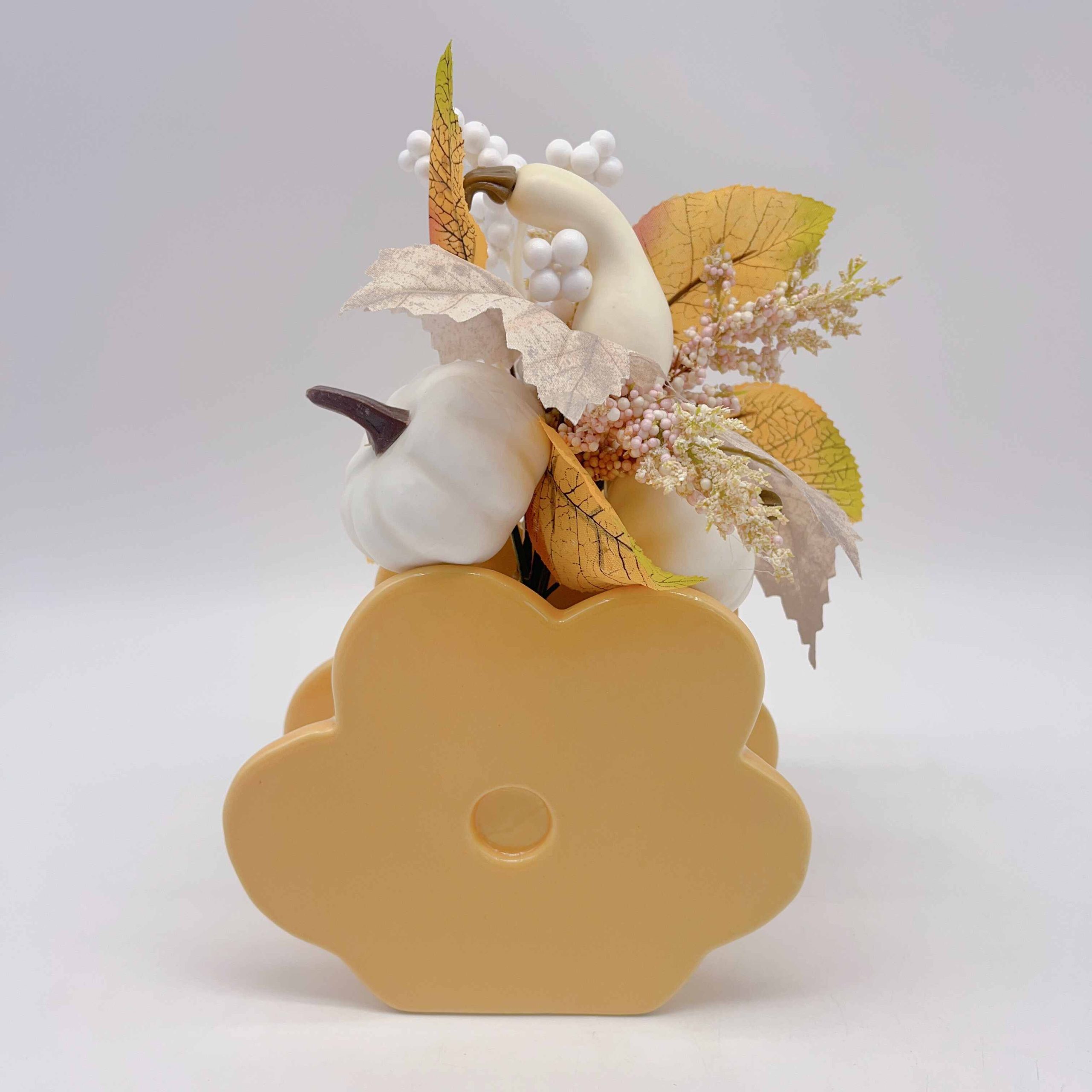 Illuminate your Halloween decor with this Small Yellow Ceramic Vase, brimming with vibrant faux flowers. Its sunny hue contrasts beautifully against rich autumn tones, while the lifelike petals evoke a sense of whimsy and charm. Perfect for adding a pop of color to any spooky setting, it??s an enchanting seasonal centerpiece.