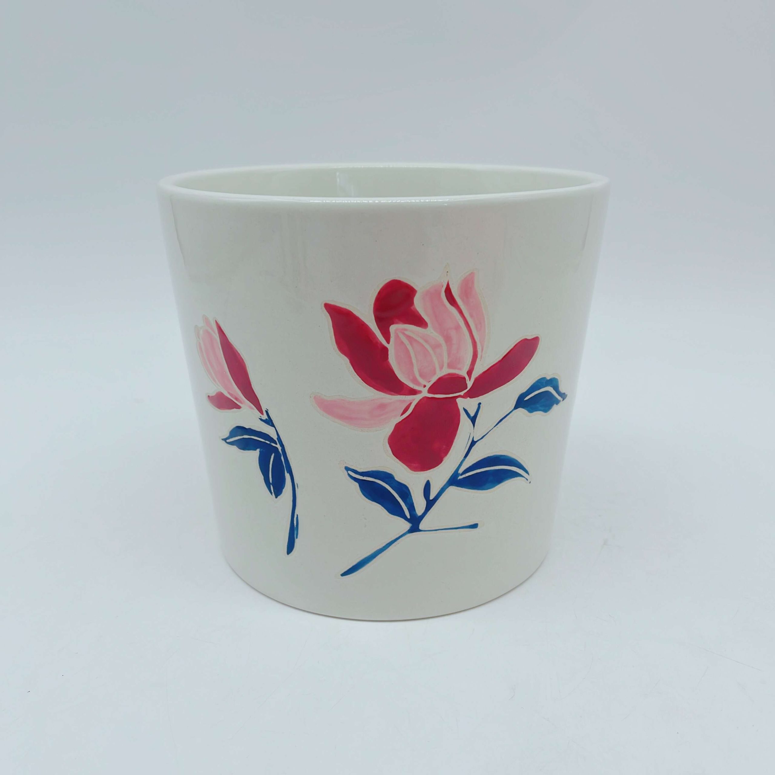 Transform your space with our White Ceramic Painted Flower Pot. Adorned with intricate floral motifs, its glossy finish gleams under sunlight. Perfect for lush greens or vibrant blooms, it adds a touch of elegance and serenity to any room or garden setting.