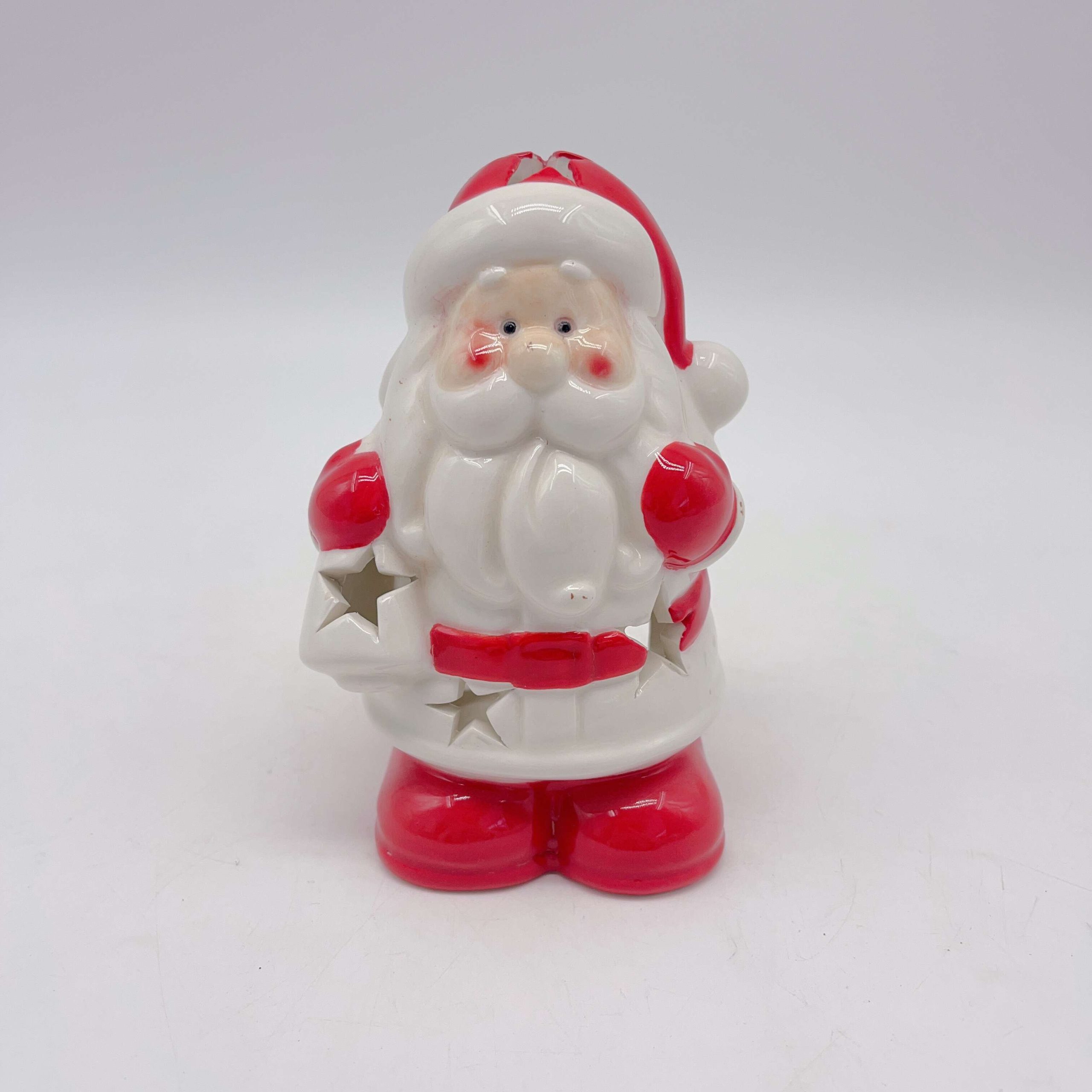 Embrace the holiday spirit with our White Ceramic Santa Claus Figurine. This exquisite piece features a delicate cut-out design, casting enchanting shadows when lit. The smooth, glossy finish and intricate detailing bring Santa to life, making it a captivating centerpiece for your festive d??cor.
