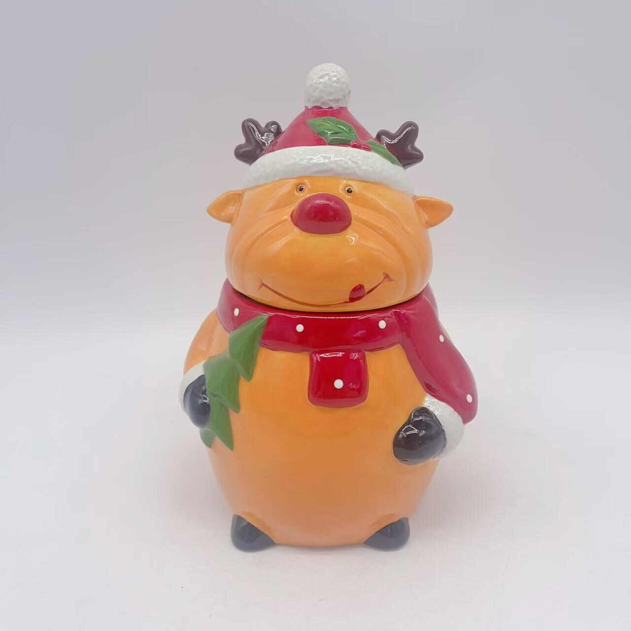 Unveil holiday magic with our Yellow Ceramic Reindeer Christmas Jar. This vibrant, sunlit jar features a whimsical reindeer prancing amidst festive motifs. Perfect for storing treats or trinkets, its smooth ceramic finish and snug lid promise freshness. A cheerful addition to any decor, it radiates warmth and joy!